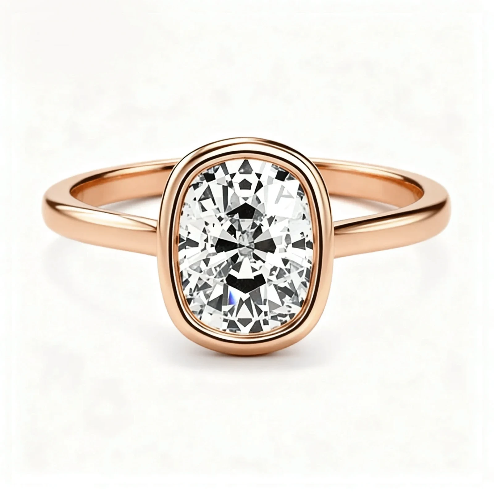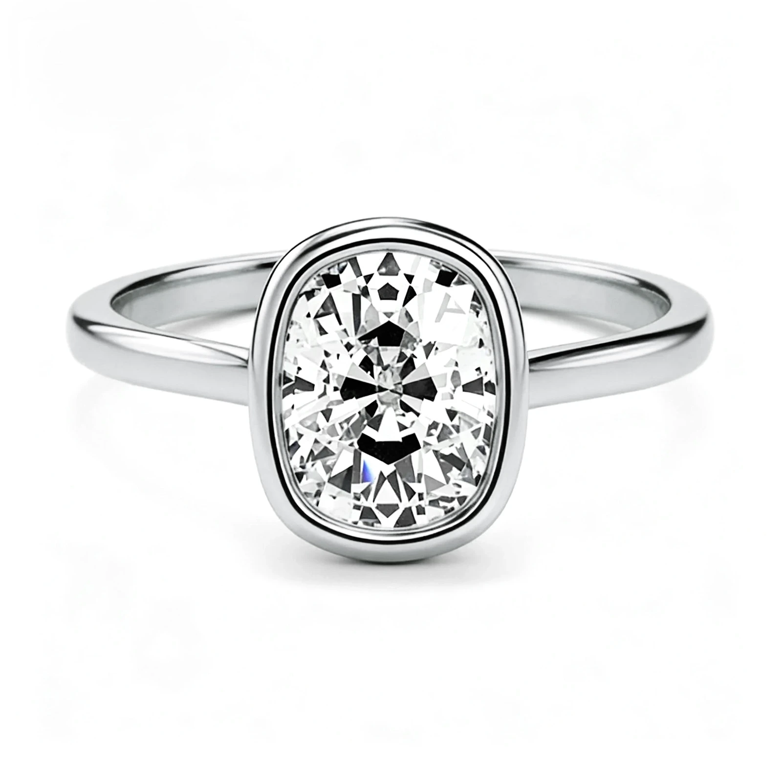 Bezel Set Elongated Cushion Cut Moissanite Engagement Ring
